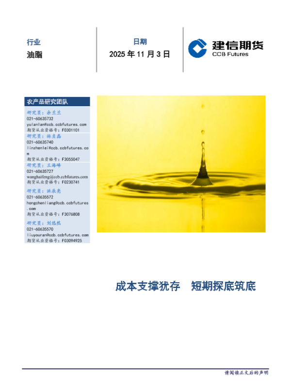 【建信期货研究发展部】【202511】成本支撑犹存短期探底筑底-13页