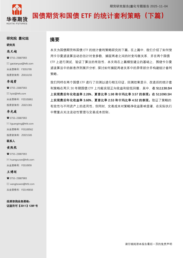 【华泰期货】【202511】国债期货和国债 ETF的统计套利策略(下篇)-15页
