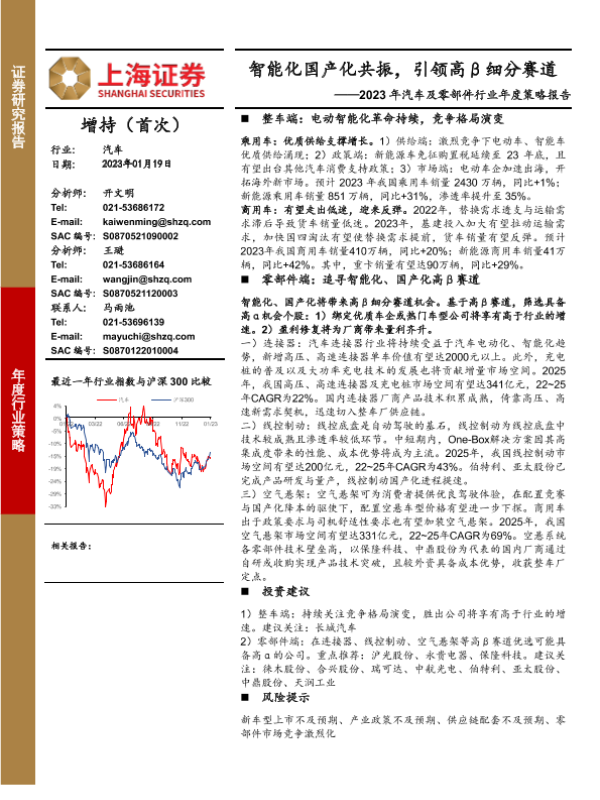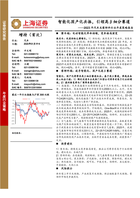 【上海证券】【20230119】2023年汽车及零部件行业年度策略报告:智能化国产化共振,引领高β细分赛道-44页