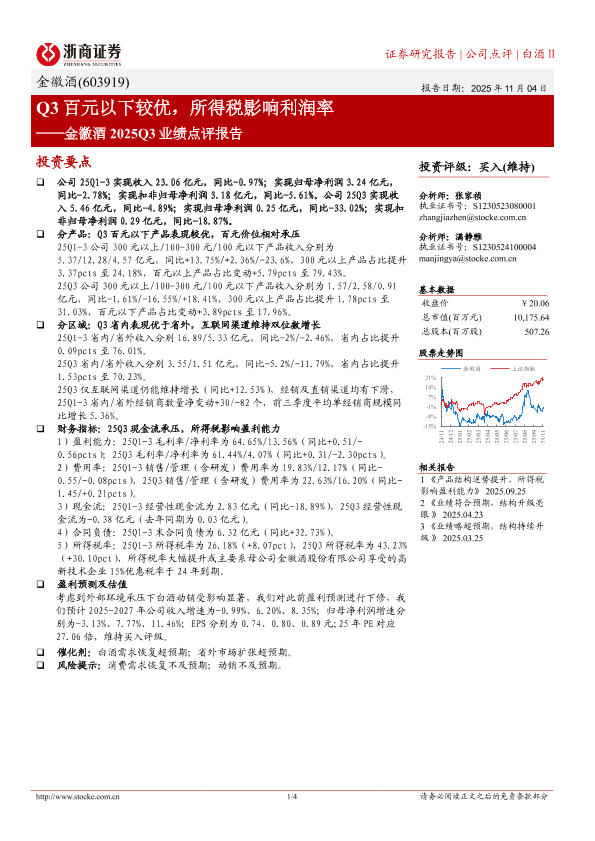 【浙商证券】【202511】金徽酒 2025Q3业绩点评报告_Q3百元以下较优_所得税影响利润率-4页