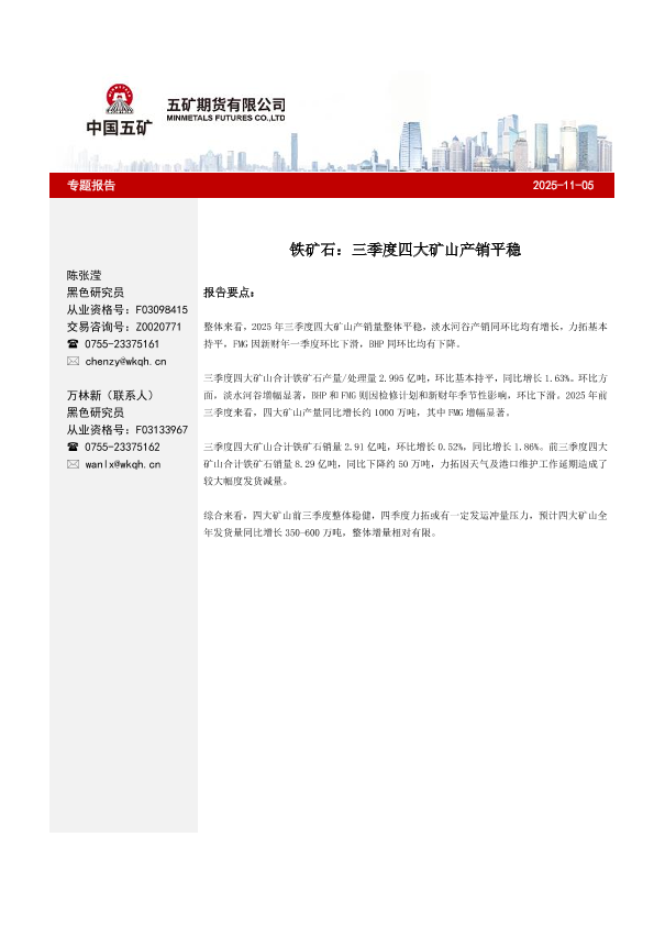 【五矿期货】【202511】铁矿石:三季度四大矿山产销平稳-6页