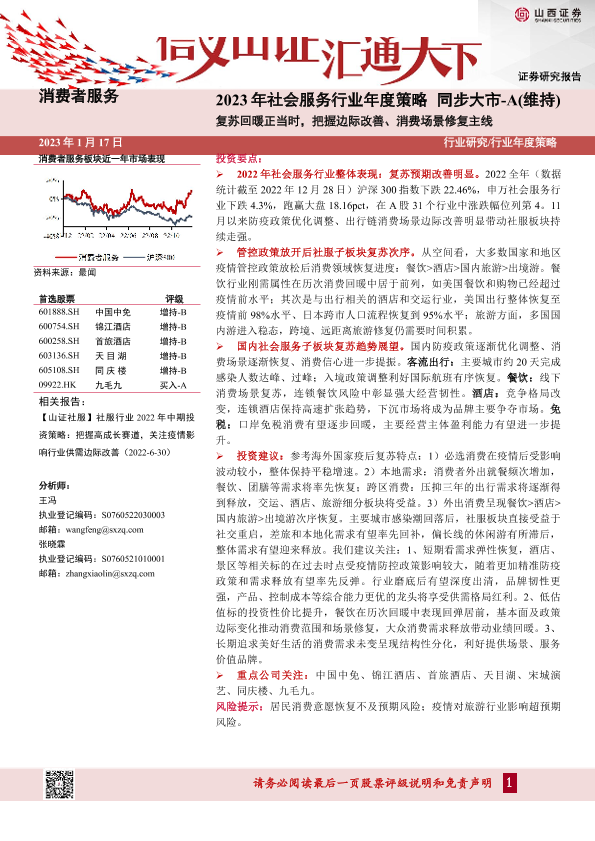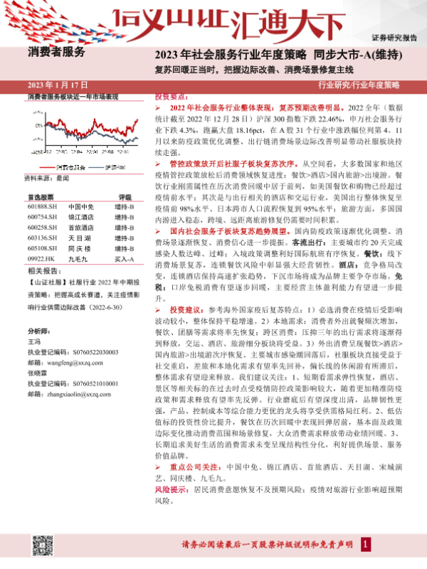 【山西证券】【20230117】2023年社会服务行业年度策略:复苏回暖正当时,把握边际改善、消费场景修复主线-39页