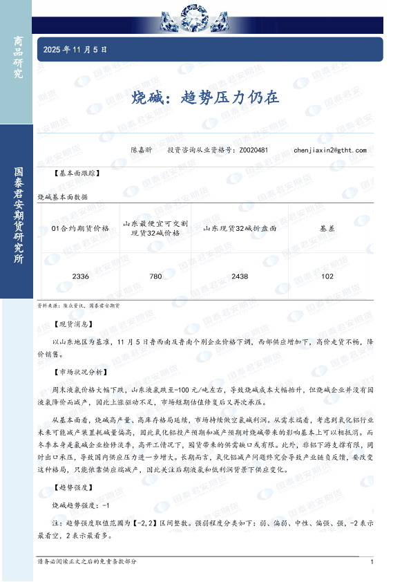【国泰君安期货】【202511】烧碱:趋势压力仍在-2页