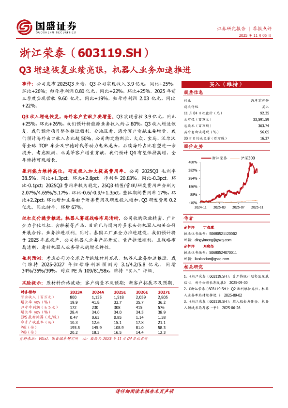 【国盛证券】【202511】Q3增速恢复业绩亮眼,机器人业务加速推进-3页