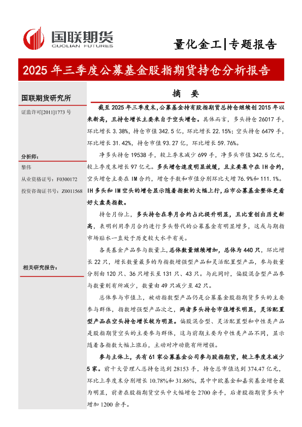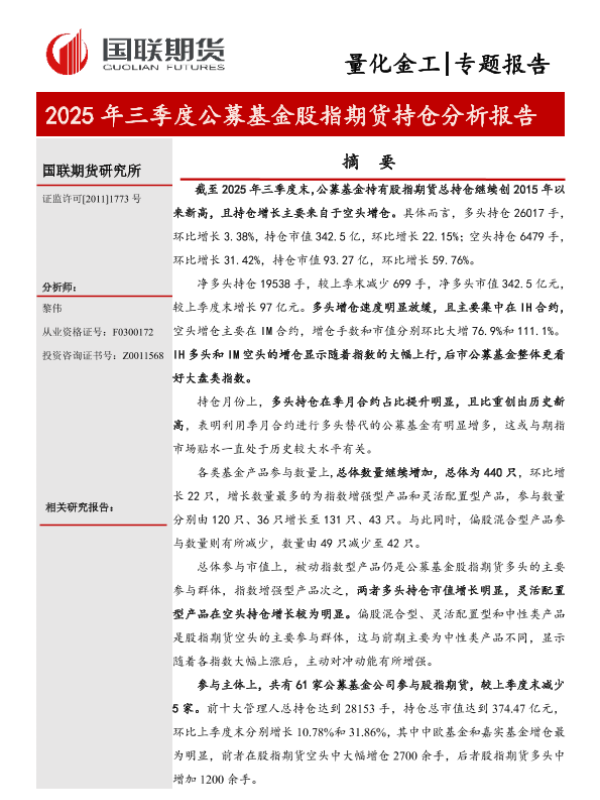 【国联期货研究所】【2025】2025年三季度公募基金股指期货持仓分析报告-12页
