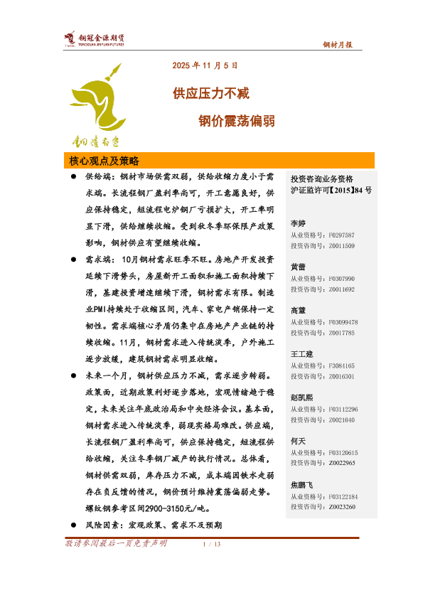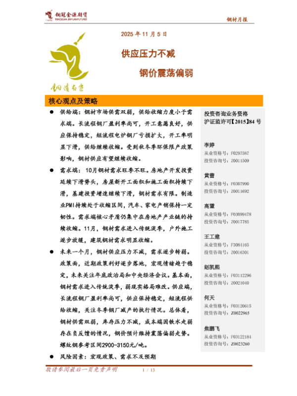 【铜冠金源期货】【202511】供应压力不减 钢价震荡偏弱-13页