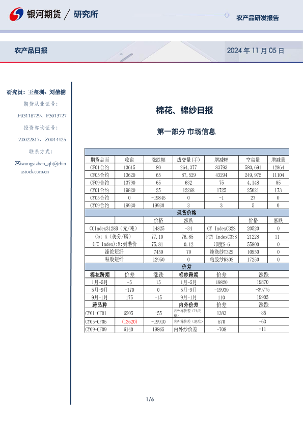 【银河期货】【202411】棉花_棉纱日报-6页