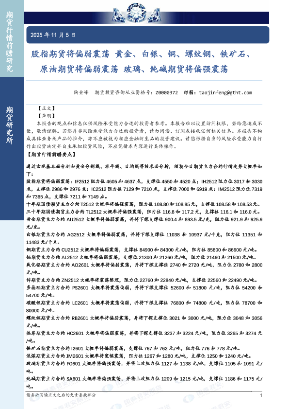 【国泰君安期货】【202511】股指期货将偏弱震荡黄金、白银、铜、螺纹钢、铁矿石、原油期货将偏弱震荡玻璃、纯碱期货将偏强震荡-35页