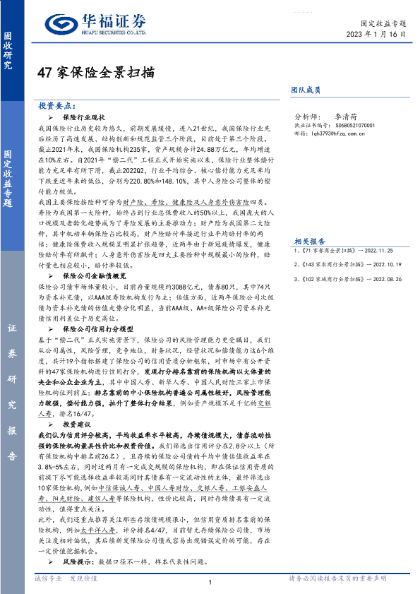 保险行业 信用分析 偿付能力 投资建议 金融债