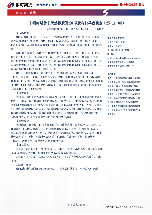 【银河期货有限公司大宗商品研究部】【202412】天然橡胶及 20号胶每日早盘观察(25-04-01)-185页