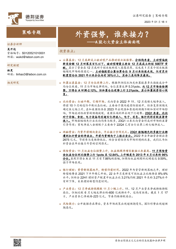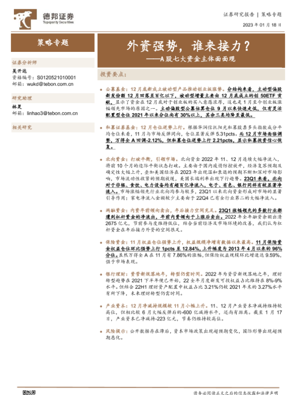 【德邦证券】【20230118】A股七大资金主体面面观:外资强势,谁来接力?-15页