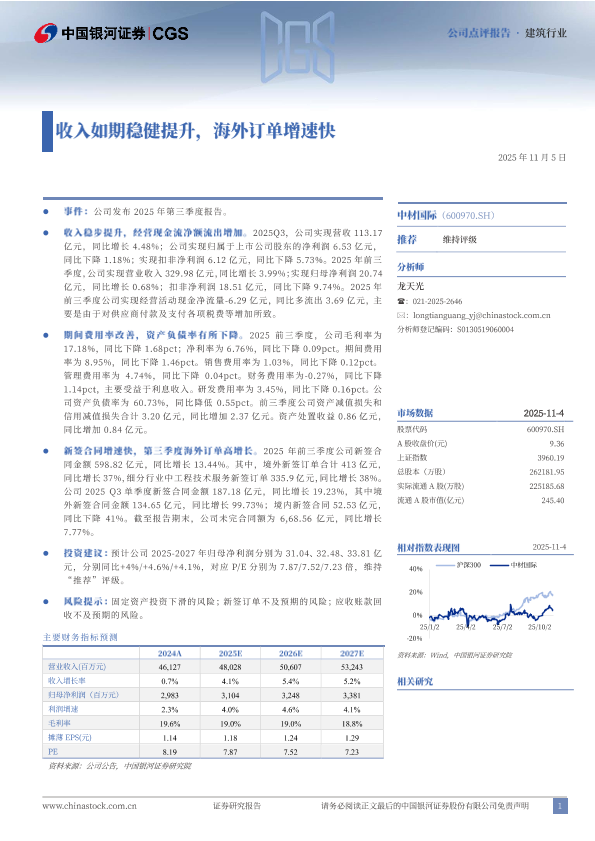 海外订单 财报分析 建筑行业 投资建议 盈利预测