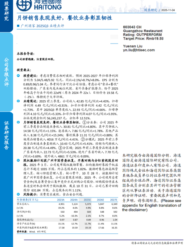 【海通国际】【202511】广州酒家2025Q3业绩点评:月饼销售表现良好,餐饮业务彰显韧性-11页