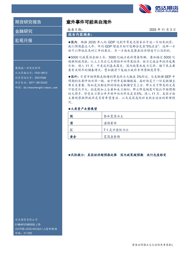 宏观经济 资产配置 金融市场 汇率预测 政策分析