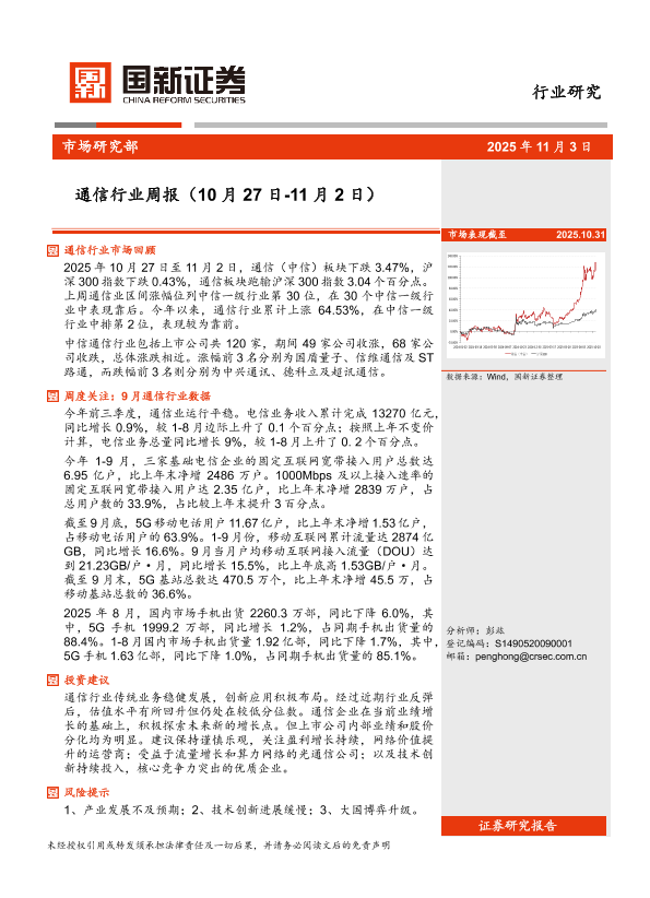 【国新证券】【202511】通信行业周报(10月 27日-11月 2日)-14页