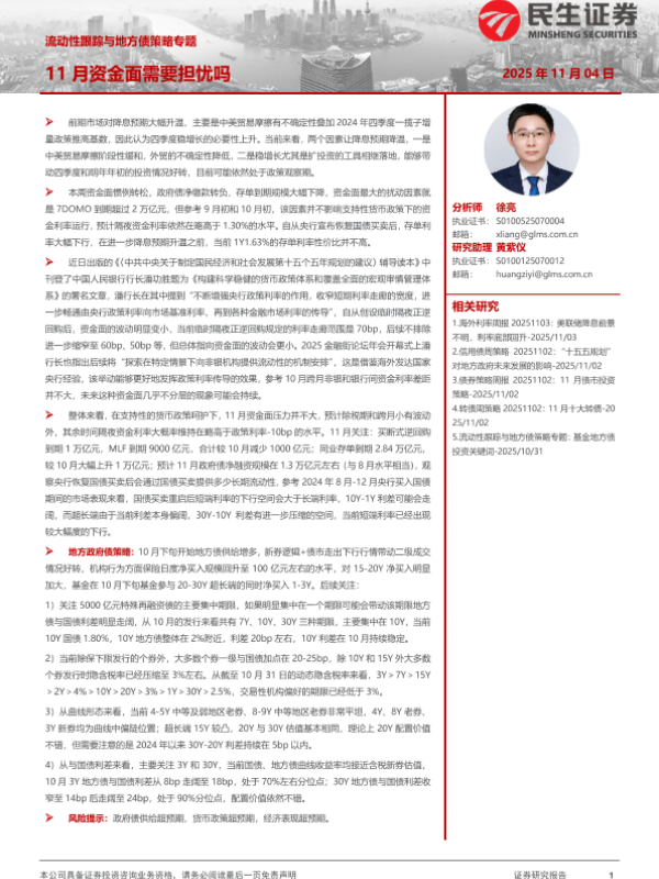 【民生证券】【202511】流动性跟踪与地方债策略专题:11月资金面需要担忧吗-24页