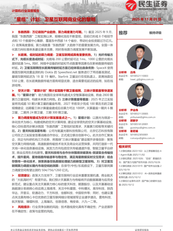 算力调度 东数西算 空天计算 星链计划 卫星互联网