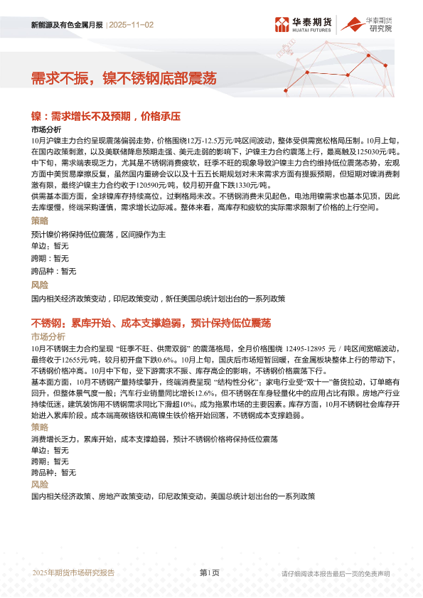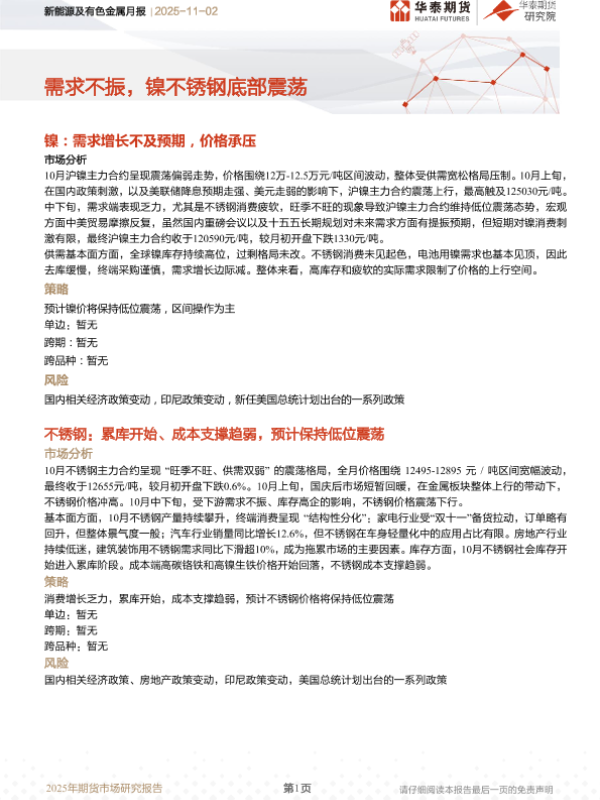 【华泰期货】【202511】新能源及有色金属月报 | 需求不振,镍不锈钢底部震荡-15页