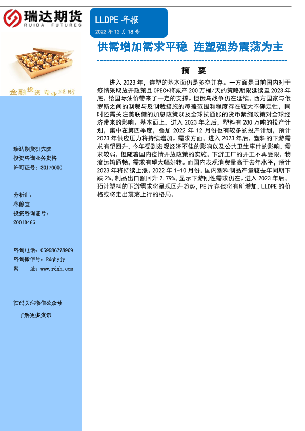 【瑞达期货】【20221218】LLDPE年报:供需增加需求平稳,连塑强势震荡为主-16页