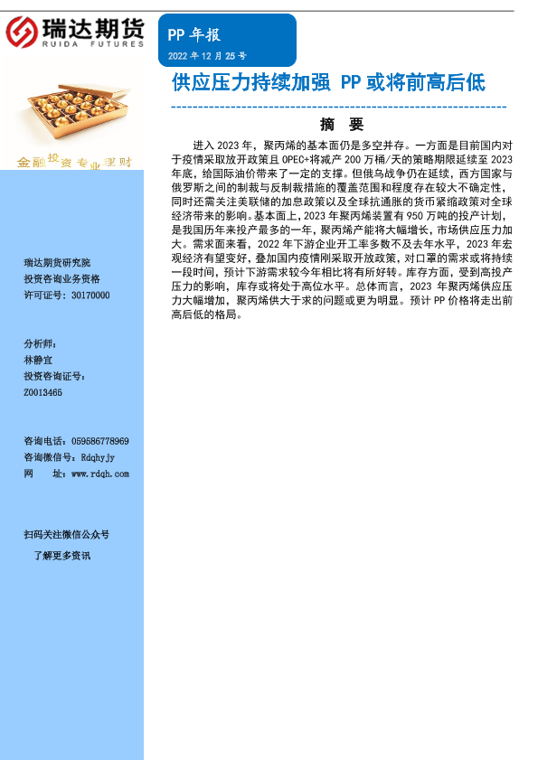 【瑞达期货】【20221225】PP年报:供应压力持续加强,PP或将前高后低-17页
