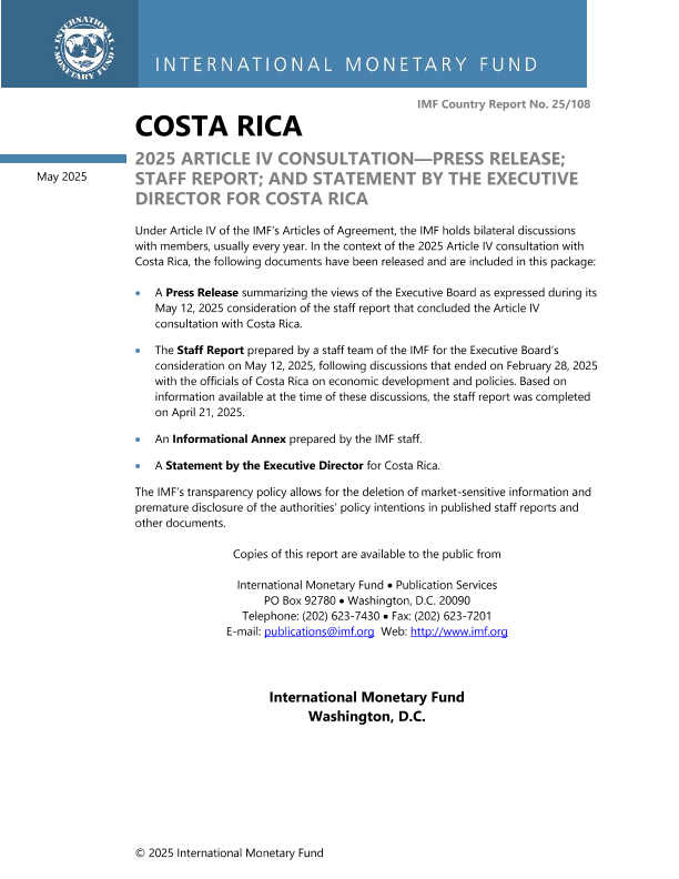 【国际货币基金组织】【202505】Costa Rica 2025 ARTICLE IV CONSULTATION—PRESS RELEASE; STAFF REPORT; AND STATEMENT BY THE EXECUTIVE DIRECTOR FOR COSTA RICA-80页