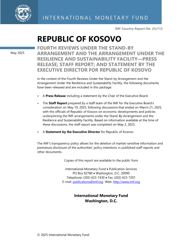 【国际货币基金组织】【202505】Republic of Kosovo Fourth Reviews Under the Stand-By Arrangement and the Arrangement Under the Resilience and Sustainability Facility-Press Release; Staff Report; and Statement by the Executive Director for Republic of Kosovo-76页