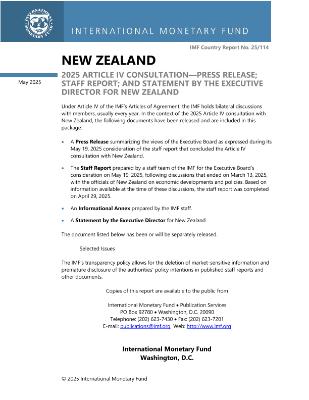 【国际货币基金组织】【202505】2025 Article IV Consultation—Press Release; Staff Report; and Statement by the Executive Director for New Zealand-78页