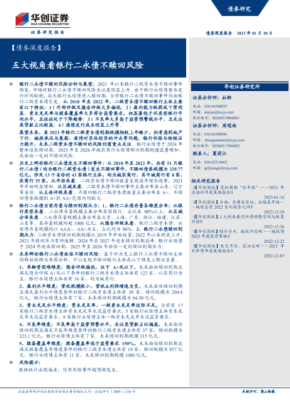 【华创证券】【20230120】【债券深度报告】:五大视角看银行二永债不赎回风险-24页
