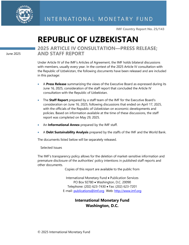 【国际货币基金组织】【202506】REPUBLIC OF UZBEKISTAN 2025 ARTICLE IV CONSULTATION—PRESS RELEASE; AND STAFF REPORT-95页
