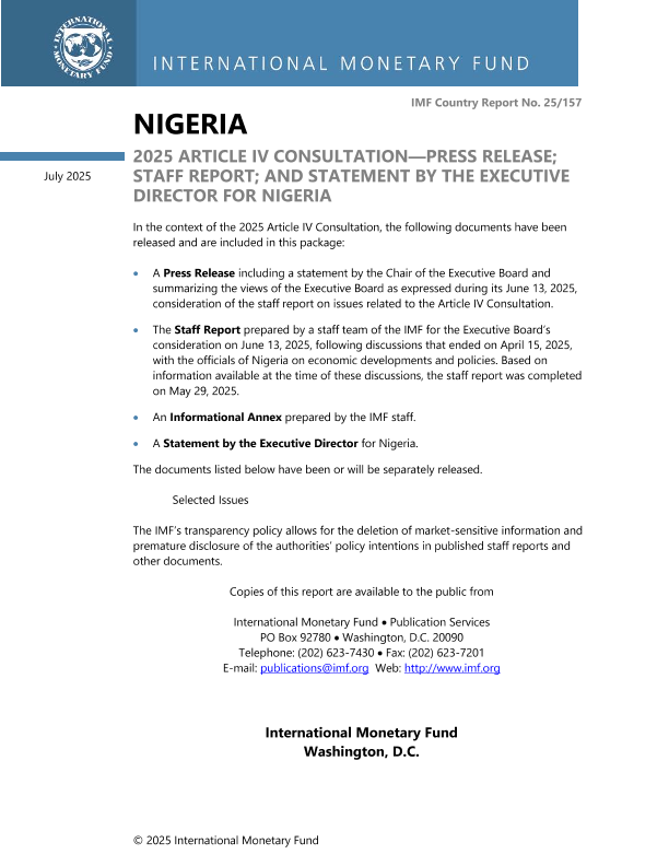 【国际货币基金组织】【202507】NIGERIA 2025 ARTICLE IV CONSULTATION—PRESS RELEASE; STAFF REPORT; AND STATEMENT BY THE EXECUTIVE DIRECTOR FOR NIGERIA-85页