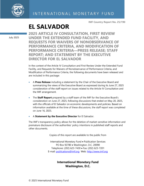 【国际货币基金组织】【202507】2025 Article IV Consultation, First Review Under the Extended Fund Facility, and Request for Waivers of Nonobservance of Performance Criteria, and Modification of Performance Criteria—PRESS RELEASE; STAFF REPORT; AND STATEMENT BY THE EXECUTIVE DIRECTOR FOR EL SALVADOR-149页