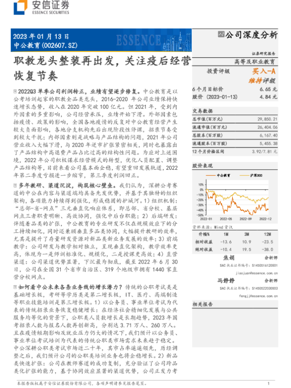 【安信证券】【20230113】中公教育(002607)职教龙头整装再出发,关注疫后经营恢复节奏-32页