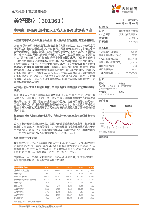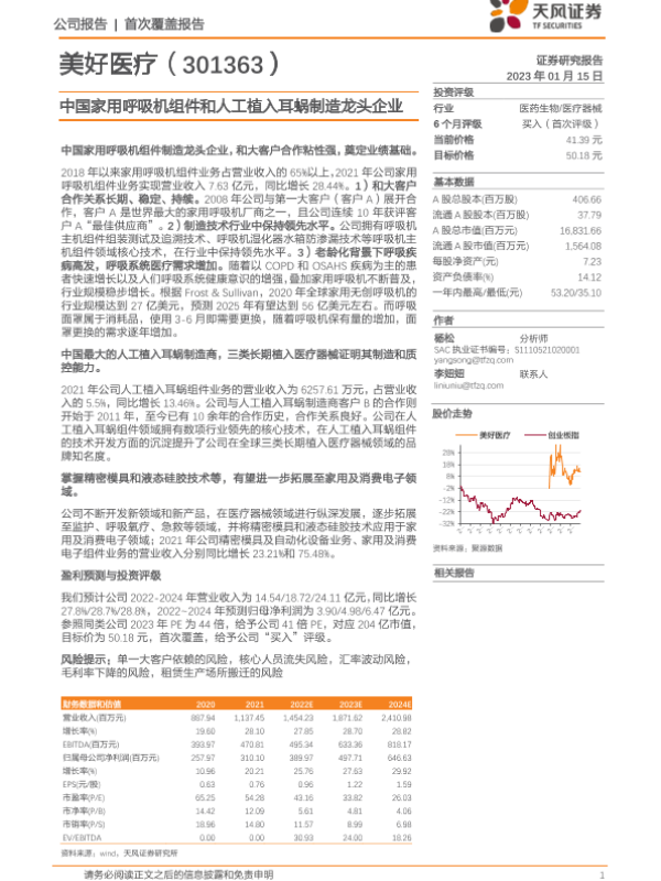 【天风证券】【20230115】中国家用呼吸机组件和人工植入耳蜗制造龙头企业-25页