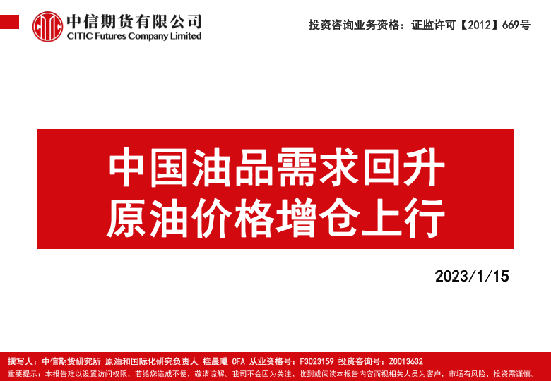 【中信期货】【20230115】中国油品需求回升,原油价格增仓上行-59页