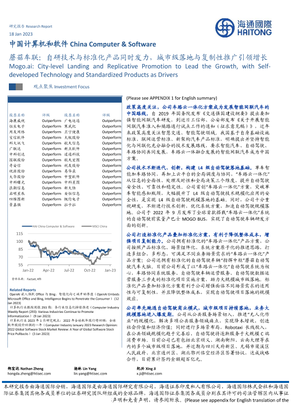 【海通证券】【20230118】中国计算机和软件行业:蘑菇车联,自研技术与标准化产品同时发力,城市级落地与复制性推广引领增长-29页