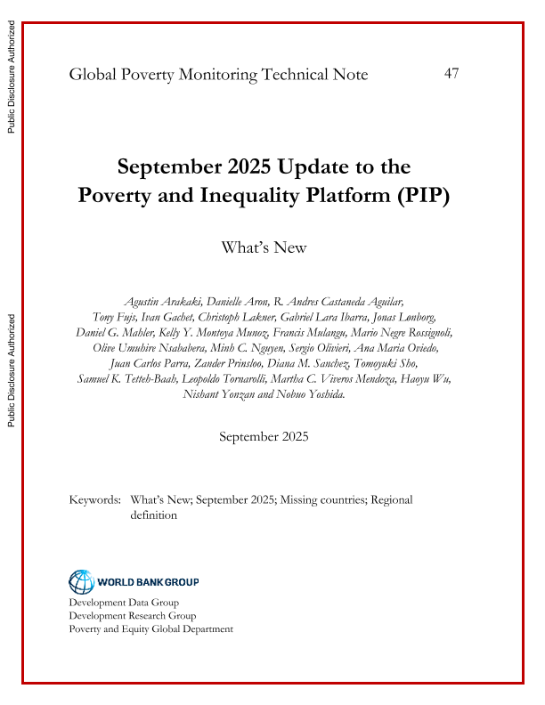 【World Bank】【202509】Global Poverty Monitoring Technical Note 47 September 2025 Update to the Poverty and Inequality Platform(PIP) What’s New-46页