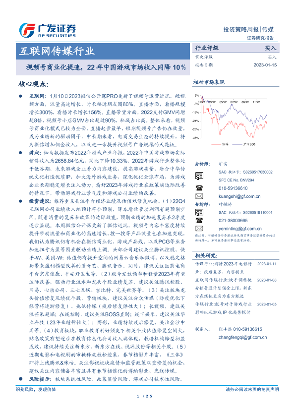 【广发证券】【20230115】互联网传媒行业:视频号商业化提速,22年中国游戏市场收入同降10%-25页