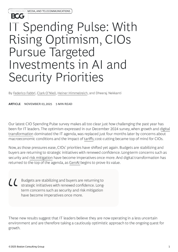 【Boston Consulting Group】【202511】IT Spending Pulse With Rising Optimism, CIOs Pursue Targeted Investments in AI and Security Priorities-7页