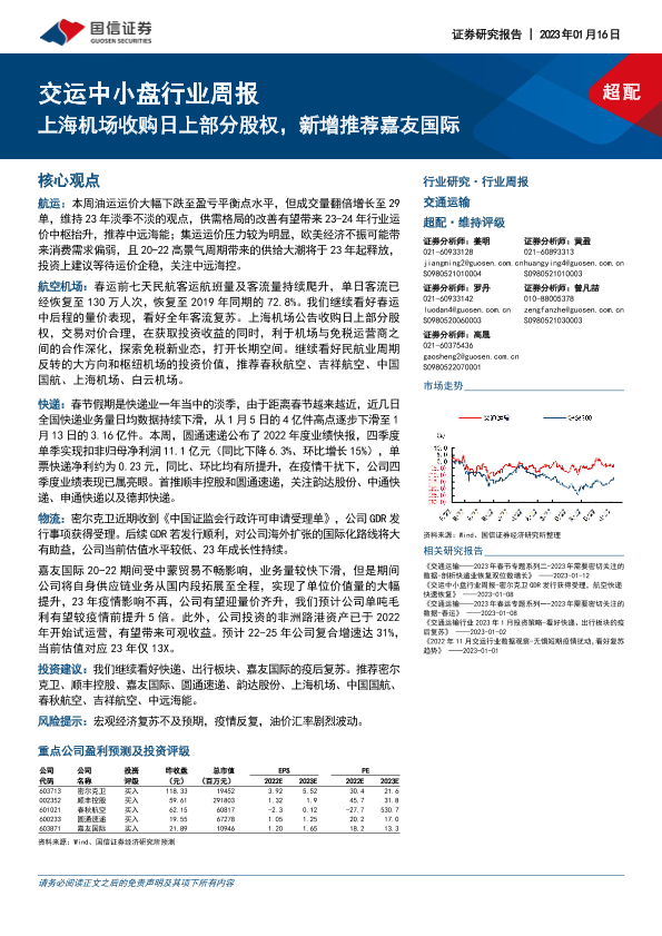 【国信证券】【20230116】交运中小盘行业周报:上海机场收购日上部分股权,新增推荐嘉友国际-15页