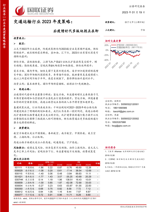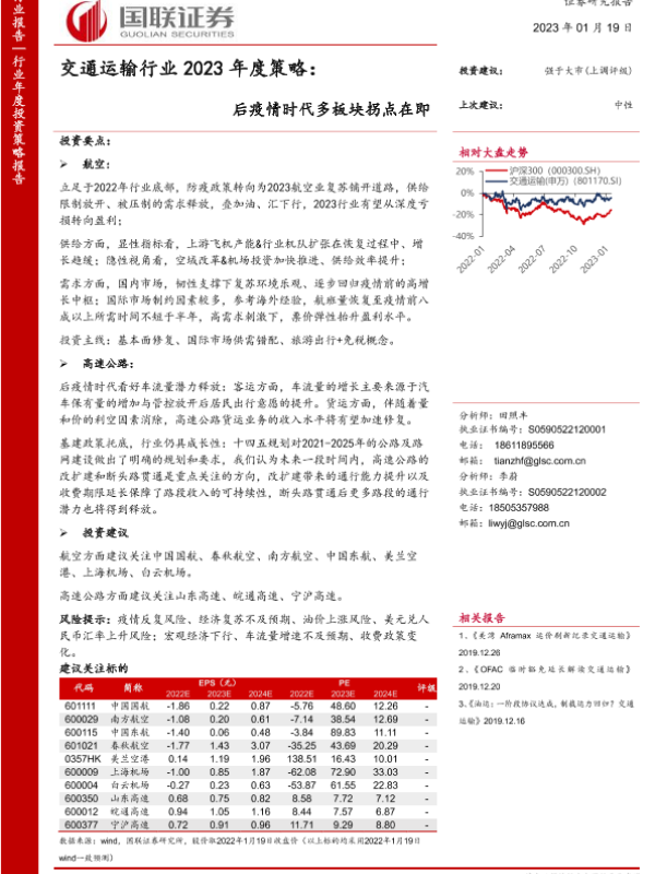 【国联证券】【20230119】交通运输行业2023年度策略:后疫情时代多板块拐点在即-20页