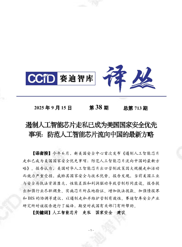 【赛迪智库安全产业研究所】【202509】遏制人工智能芯片走私已成为美国国家安全优先事项:防范人工智能芯片流向中国的最新方略-36页