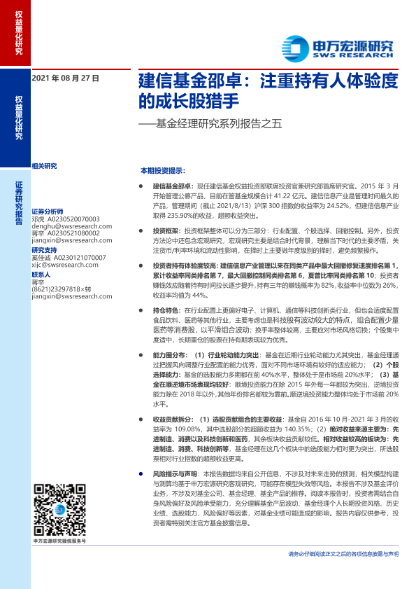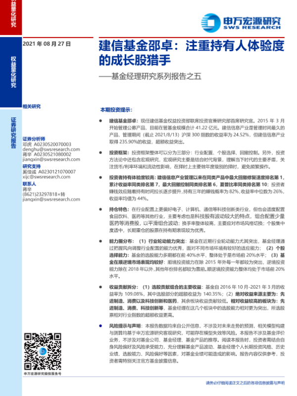 【申万宏源】【20210827】建信基金邵卓:注重持有人体验度的成长股猎手-18页