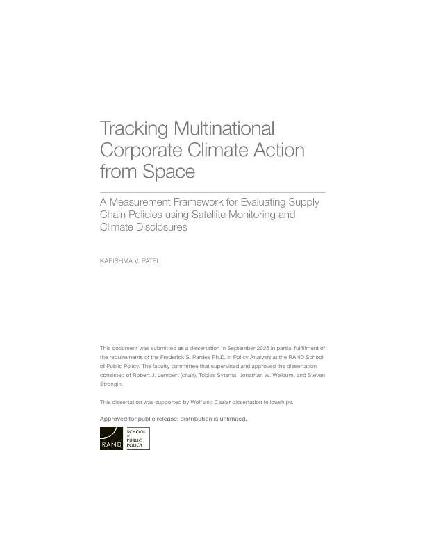 【RAND Corporation】【2025】Tracking Multinational Corporate Climate Action from Space A Measurement Framework for Evaluating Supply Chain Policies using Satellite Monitoring and Climate Disclosures-154页