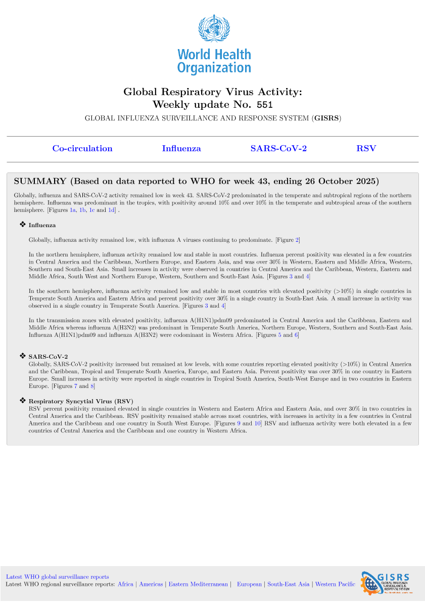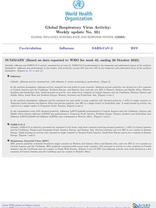 【World Health Organization】【2025】Global Respiratory Virus Activity Weekly update No. 551-5页