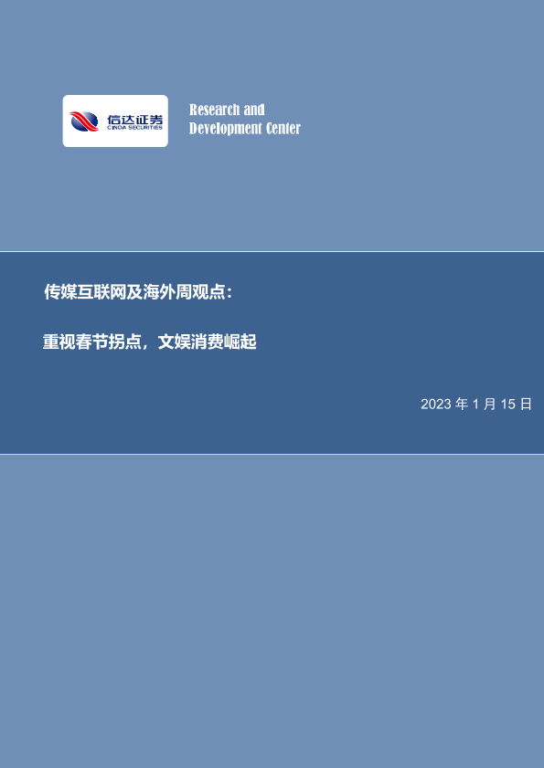 【信达证券】【20230115】传媒互联网及海外周观点:重视春节拐点,文娱消费崛起-23页