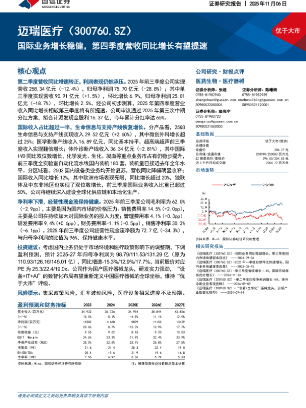 【国信证券】【202511】优于大市 迈瑞医疗(300760.SZ)-6页