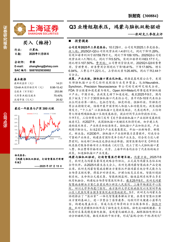 【上海证券】【202511】狄耐克三季报点评:Q3业绩短期承压,鸿蒙与脑机双轮驱动-4页