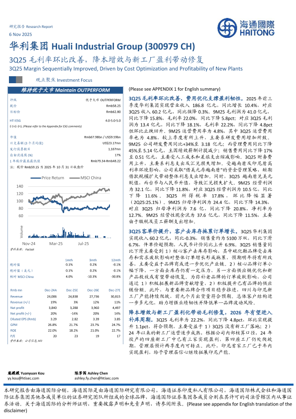 【海通国际】【202511】3Q25毛利率环比改善,降本增效与新工厂盈利带动修复-14页