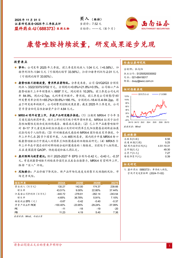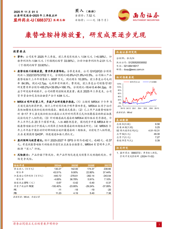 买入评级 研发进展 财报分析 康替唑胺 医药生物