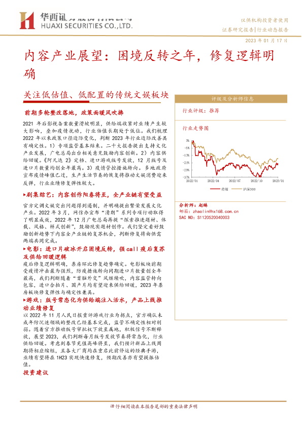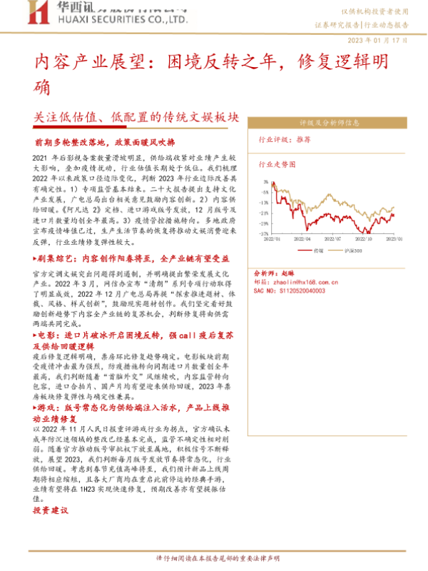 【华西证券】【20230117】传媒行业关注低估值、低配置的传统文娱板块:内容产业展望,困境反转之年,修复逻辑明确-18页